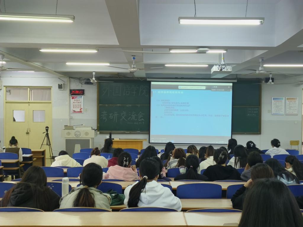 10月19日下午14点,kaiyun中国官方网站英语教学部在综合楼212举办了2023年考研经验交流会,旨在帮助学生了解研究生入学考试备考的过程。与会人员为英语专业2021和2022级学生。