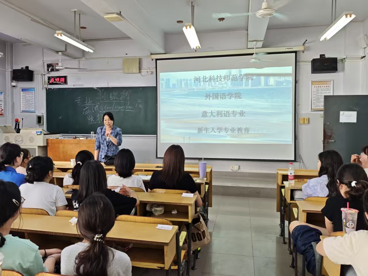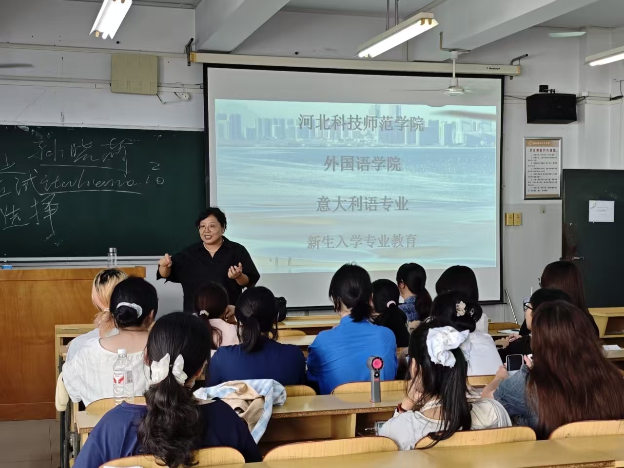 9月3日下午,秦皇岛校区西楼306教室,意大利语专业2025级全体新生齐聚于此,与意大利语教学部全体教师共同参与了新生入学教育活动。此次活动旨在帮助新生快速了解专业情况、明确学习方向,为开启大学阶段的意语学习之旅奠定坚实基础。