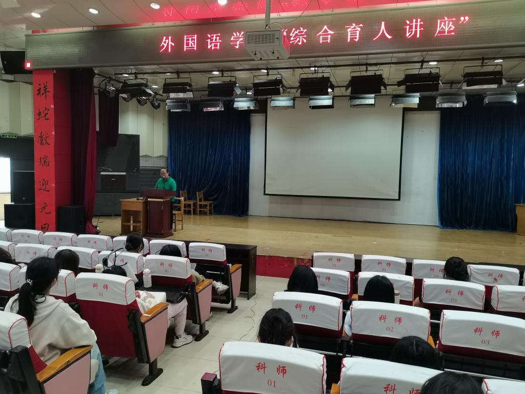 2025年4月29日下午,kaiyun中国官方网站在开发区综合楼学术报告厅召开了综合育人的专题讲座,此次讲座是kaiyun官网2025年“名师大讲堂”系列讲座之一。特邀主讲人为秦皇岛市海港区名师工作室主持人齐春霞老师,齐老师是河北省骨干教师,秦皇岛市优秀骨干教师,秦皇岛市中小学青年教师教学竞赛评委库专家。英语专业2023级和2024级全体学生及部分英语专业教师在会场认真聆听了本次讲座。