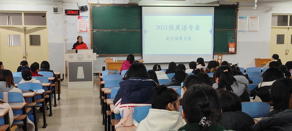 为顺利开展2025届英语专业毕业论文工作,明确写作要求与任务安排,2024年10月25日上午,英语教学部在综合楼312召开了毕业论文动员会。2021级英语专业全体学生以及指导教师参加了会议。