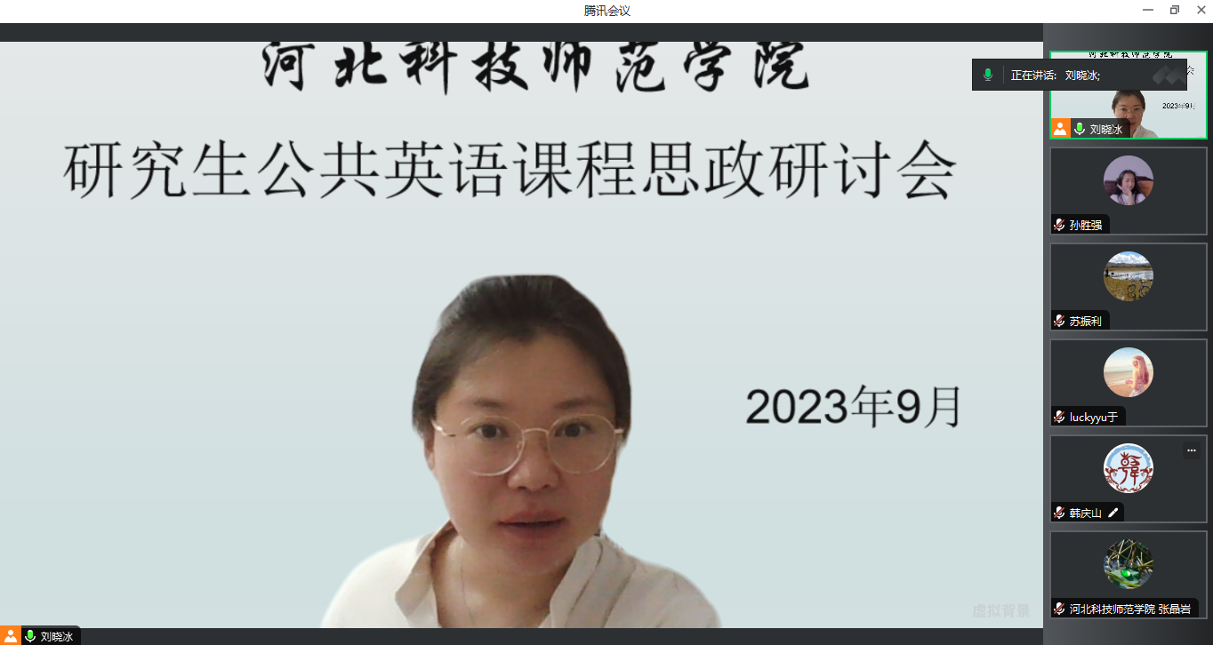 2023年9月8日kaiyun中国官方网站学科教学(英语)教学部组织硕士研究生公共英语(第一外国语)任课教师开展教学研讨活动,会议主题围绕研究生公共英语课程思政展开,研讨内容包括:针对教材的各个章节选出精讲主题和配套的练习,任课教师可以根据学生的具体专业情况灵活把握课程思政的切入点,可以利用超星学习通教学平台布置英语词汇、小组活动及主题作业等学习任务,并积极开展课程思政。