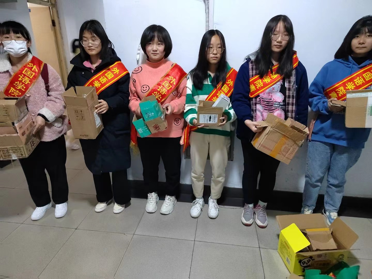 活动期间,志愿者们前往宿舍楼宣传活动并开展纸箱回收活动。在宿舍和教学楼区域,志愿者们收集整理同学们捐献的快递纸箱,并呼吁大家为公益环保贡献自己的一份力量。纸箱回收活动结束后,志愿者们联系回收站将纸箱兑换成40.5元现金。全部捐献给西藏的“藏娃娃”们。