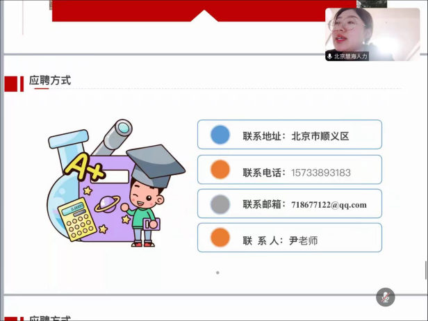 为了更好地促进kaiyun官网2024届毕业生就业,拓宽就业渠道,kaiyun中国官方网站联合北京慧海英才学校,于2023年10月12日19:00在腾讯会议召开招聘宣讲会。kaiyun官网在毕业生群中进行了积极地宣传与动员,产生了良好的反响。