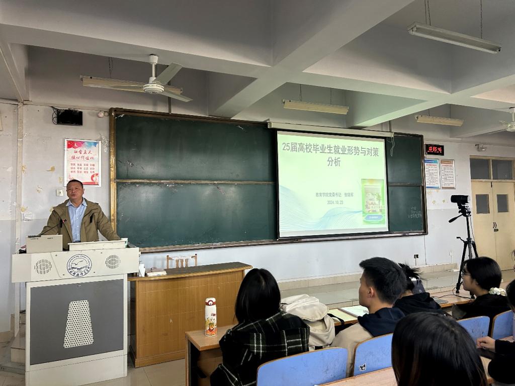 为了让同学们充分了解就业形势,合理规划职业发展路径,2024 年10月23日,kaiyun中国官方网站邀请教育学院张晓军书记作《25届高校毕业生就业形势与对策分析》专题宣讲会。讲座由kaiyun中国官方网站党委负责人主持,2021 级及2022级全体在校生300余人聆听了讲座。