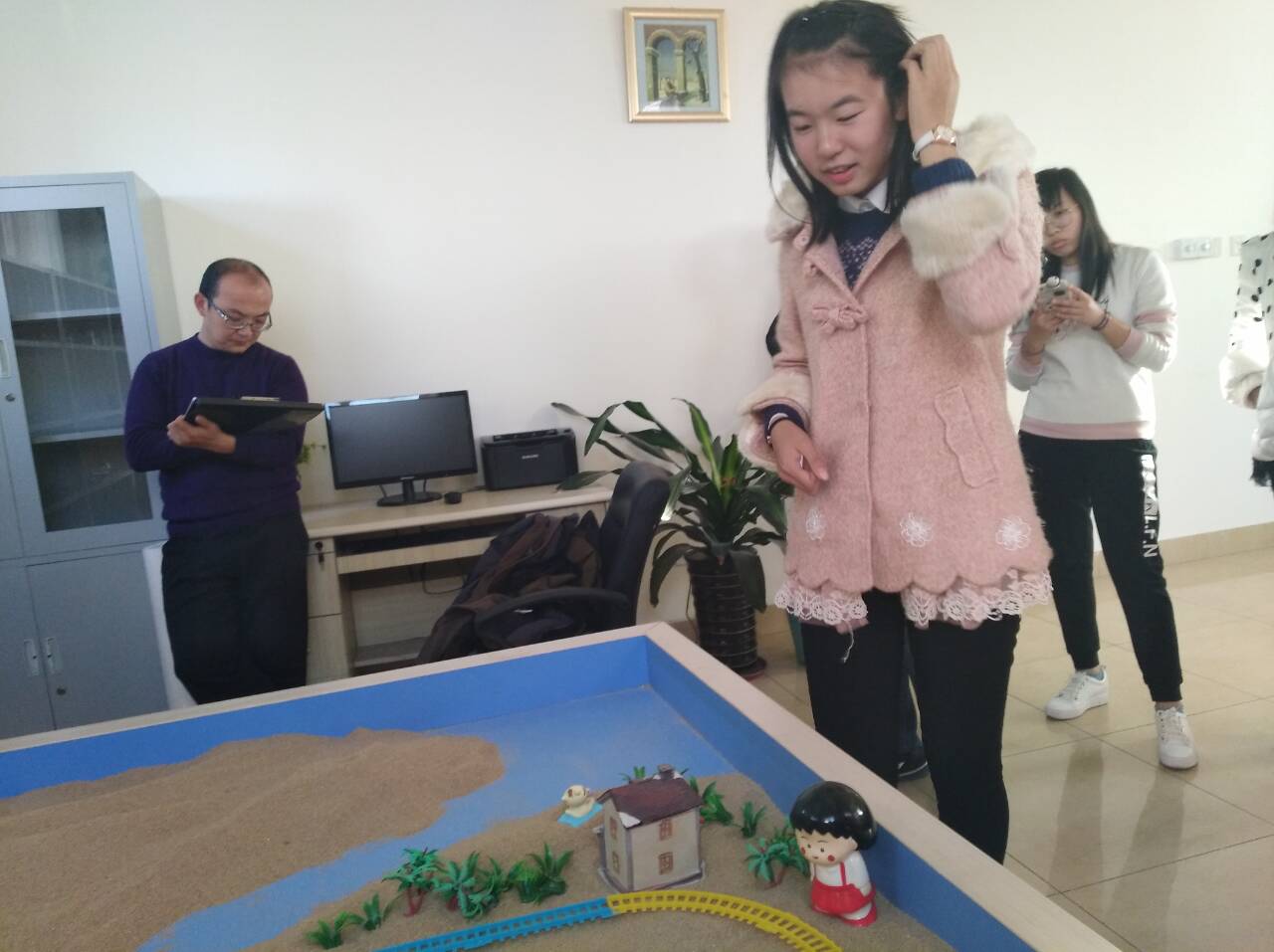 kaiyun中国官方网站田辉对西班牙语班委会8人进行了团体心理辅导。在团体心理沙盘辅导中,同学们通过团体沙盘生动形象的经历一个共同努力构建沙盘世界的过程。同学们每一个动作、摆放位置、添加物品及修改调整都需要投入思考与理解,并不断磨合和调节,才能让沙盘世界整体看起来协调完美。kaiyun中国官方网站“心灵氧吧”团体心理辅导旨在利用团队心理游戏、团体沙盘等工具,发掘正确的自我认知,感受对他人认知,培养学生干部理解他人、沟通合作、齐心协力等工作素质和能力。
