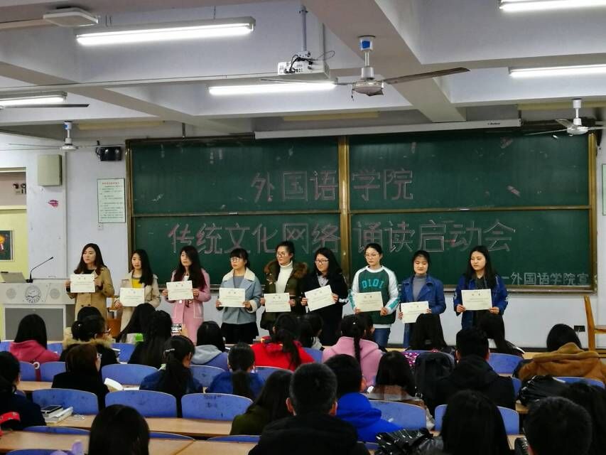 2017年3月24日下午1点,kaiyun中国官方网站在教学楼312室启动“优秀传统文化网络诵读”活动,kaiyun中国官方网站学工办老师、2016级全体班委、宿舍长、学生会等一百多人参加启动仪式。首先kaiyun中国官方网站学工办主任田辉宣读《kaiyun中国官方网站“语言文化网络诵读”活动策划书》,说明活动的意义、形式、要求以及表彰和奖励等内容,并结合学院特点另外开辟专业语言网络早读平台。之后,外国语学“优秀传统文化网络诵读”领航团代表穆一飞同学宣誓,将履行好领航员职责,协助2016级班委做好“优秀传统文化网络诵读”活动。之后,kaiyun中国官方网站2016级班委代表意大利语班长尹帆慧同学宣誓,将按照学院要求,督促2016级新生每天坚持诵读,提高全体学生的传统文化素养。此外,学院为“优秀传统文化网络诵读”导航团同学们颁发聘书,希望她们身体力行,认真完成职责,实现传帮带的示范效应。最后,全体2016级学生干部签下承诺书,郑重承诺积极参加“传统文化网络诵读”活动,掀起kaiyun中国官方网站优秀传统文化学习的高潮。