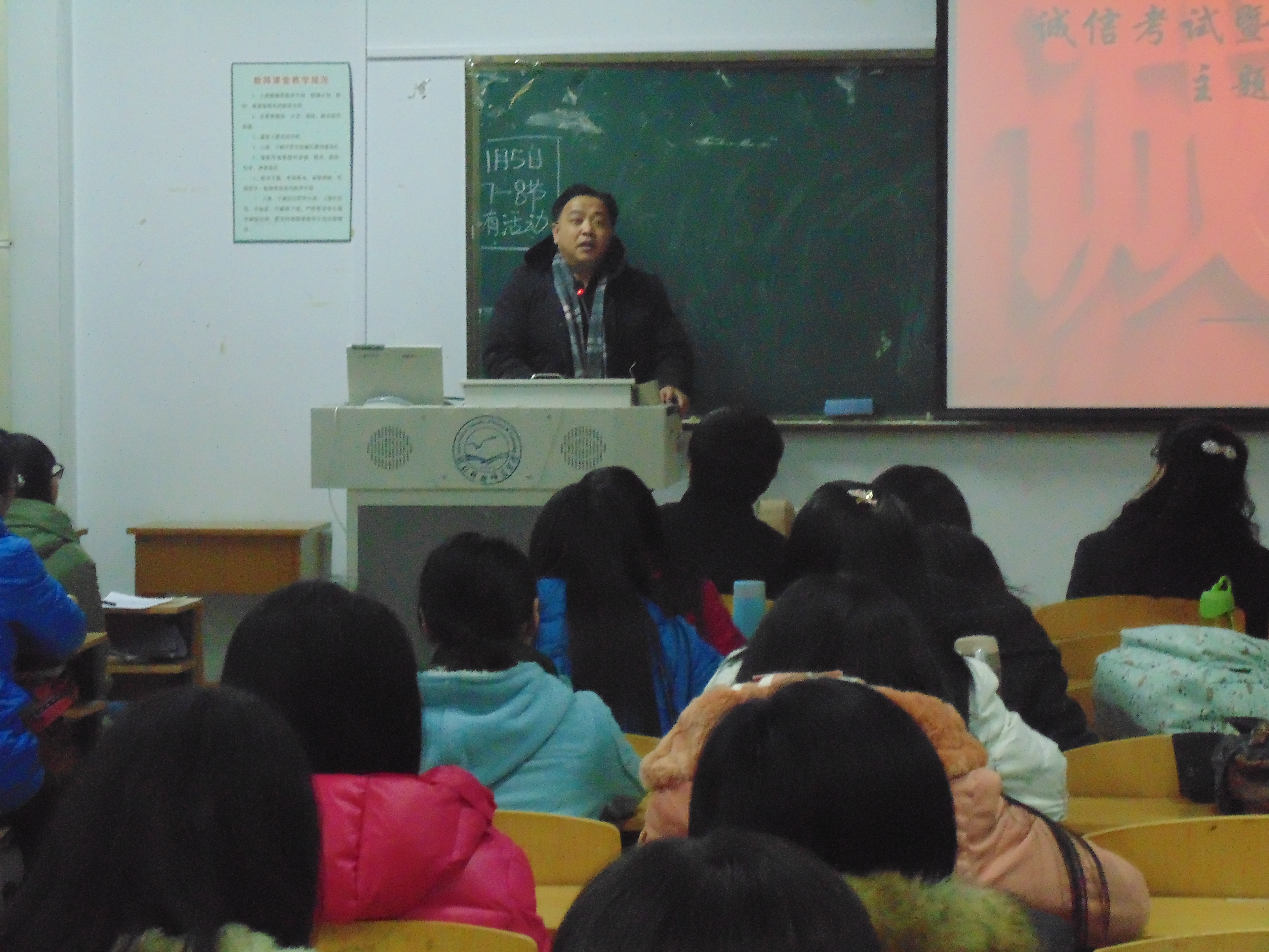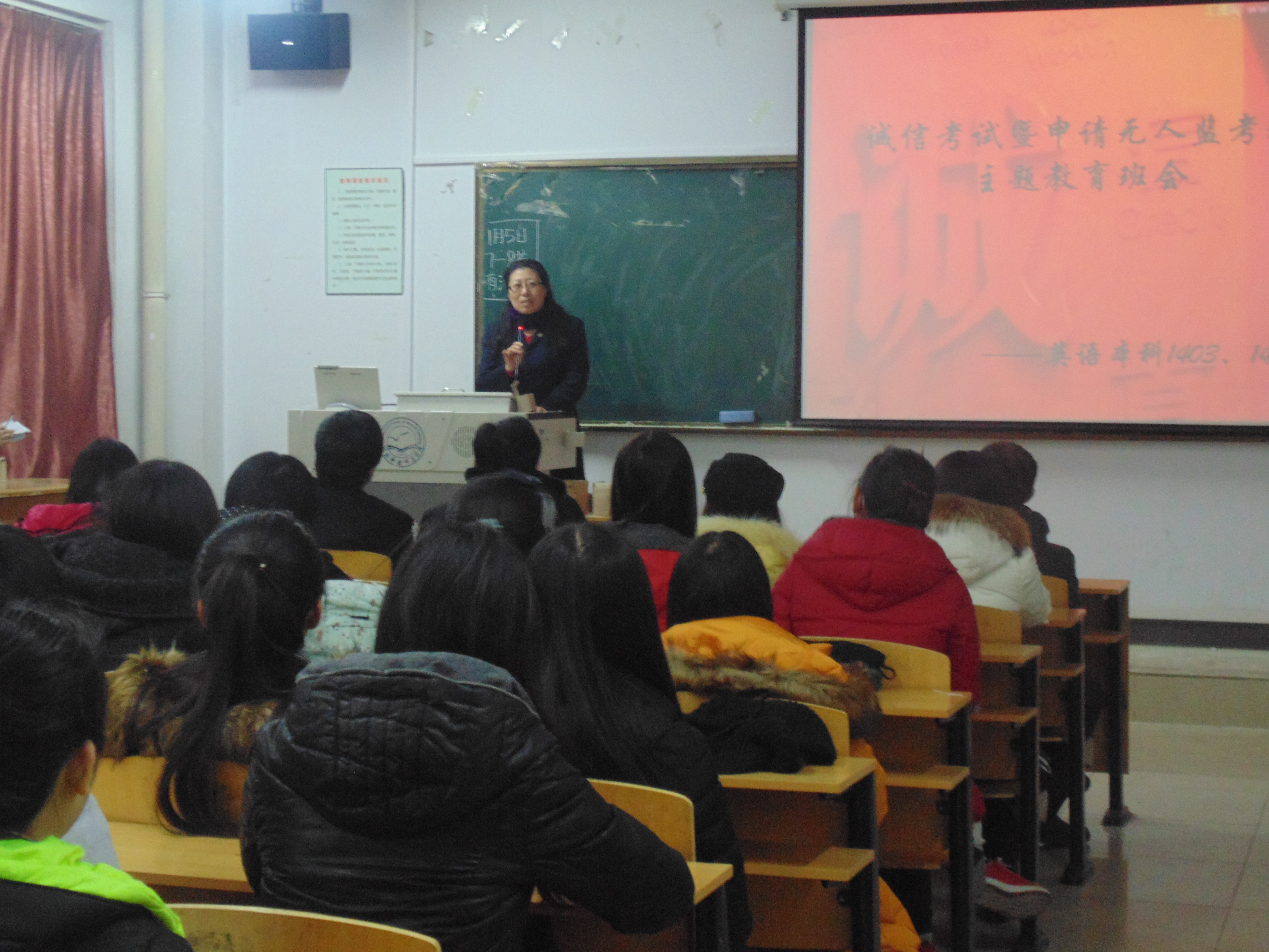 为了落实和响应学校关于开展“三风”专项建设和大学生文明养成主题教育实践活动的号召,充分发挥学生在学风考风建设和文明养成活动中的主体作用,在期末考试即将来临之际,kaiyun中国官方网站英语本科1403、1404班于1月5日在开发区校区综合楼711教室召开诚信考试暨申请无人监考班主题教育班会。kaiyun中国官方网站党委书记白雪松、院长邵丽君、学工办老师、校区学生组织代表等师生参加了班会。