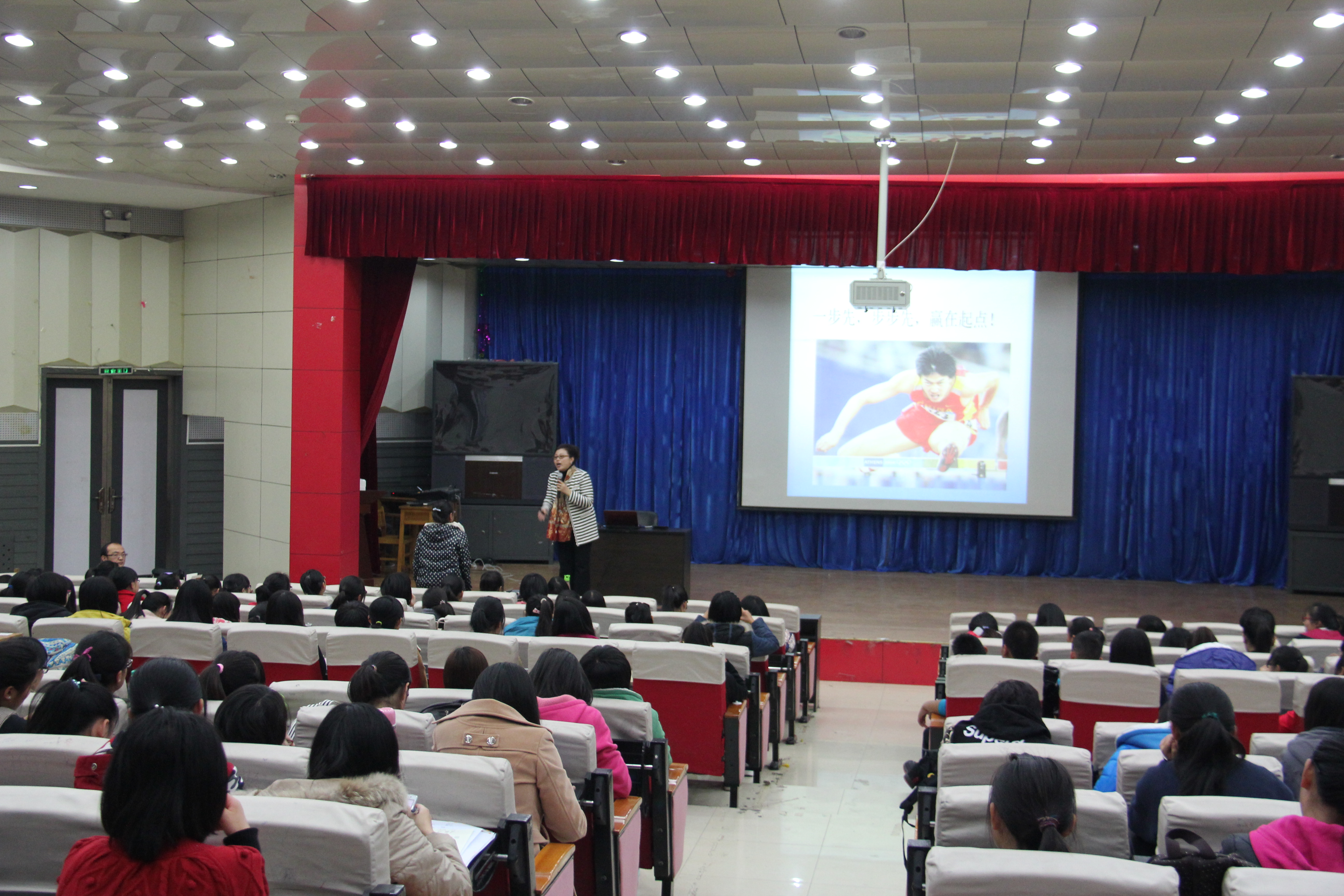 2014年11月4日晚7点,kaiyun中国官方网站在综合楼二楼报告厅成功举办了“大学生活,从心开始”的心理讲座。主讲人为学校心理咨询中心的丁书新老师,学工办老师和300多名大一新生到场聆听讲座。