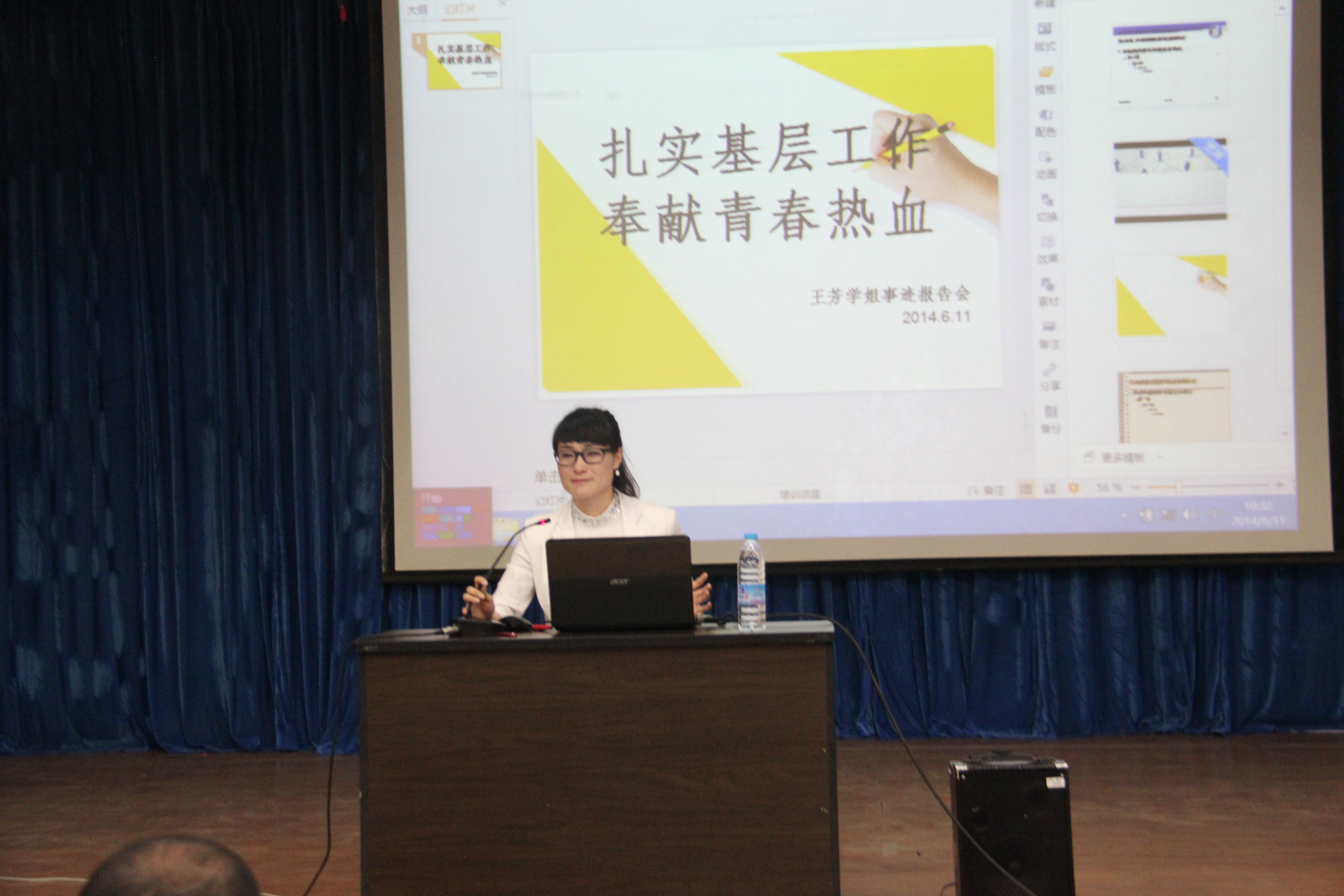 近日,kaiyun官网kaiyun中国官方网站邀请2010届英语专业优秀毕业生王芳回母校作事迹报告。kaiyun中国官方网站的党政负责同志和师生400余人参加了本次事迹报告会。在报告中,王芳结合自身基层村官工作经历,通过生动形象的语言讲述了自己如何融入乡村管理工作,如何脚踏实地开展群众谈心谈话工作,如何坚定信念主动学习,获得英武山村群众的高度认可,全票当选为英武山村第一任女村主任的经历。她朴实生动的话语感染着在场的每一位师生,赢得了阵阵掌声。王芳在报告中讲到:“自己认准的目标,一定要坚持到底”;“自己认准的目标,一定要努力奋斗”;“ 在工作中,皮肤晒黑了,心却红了”。王芳的精彩报告为现场的师生进行了一次刻骨铭心的心灵洗礼,让我们感受到一名优秀村官一心为民,踏实工作的精神力量。参加报告会的毕业生都深受感动和鼓舞,很多同学激动地说,王芳师姐为同学们做出了榜样,我们也希望向她一样能在祖国最需要的地方建功立业,创出属于自己的辉煌人生。