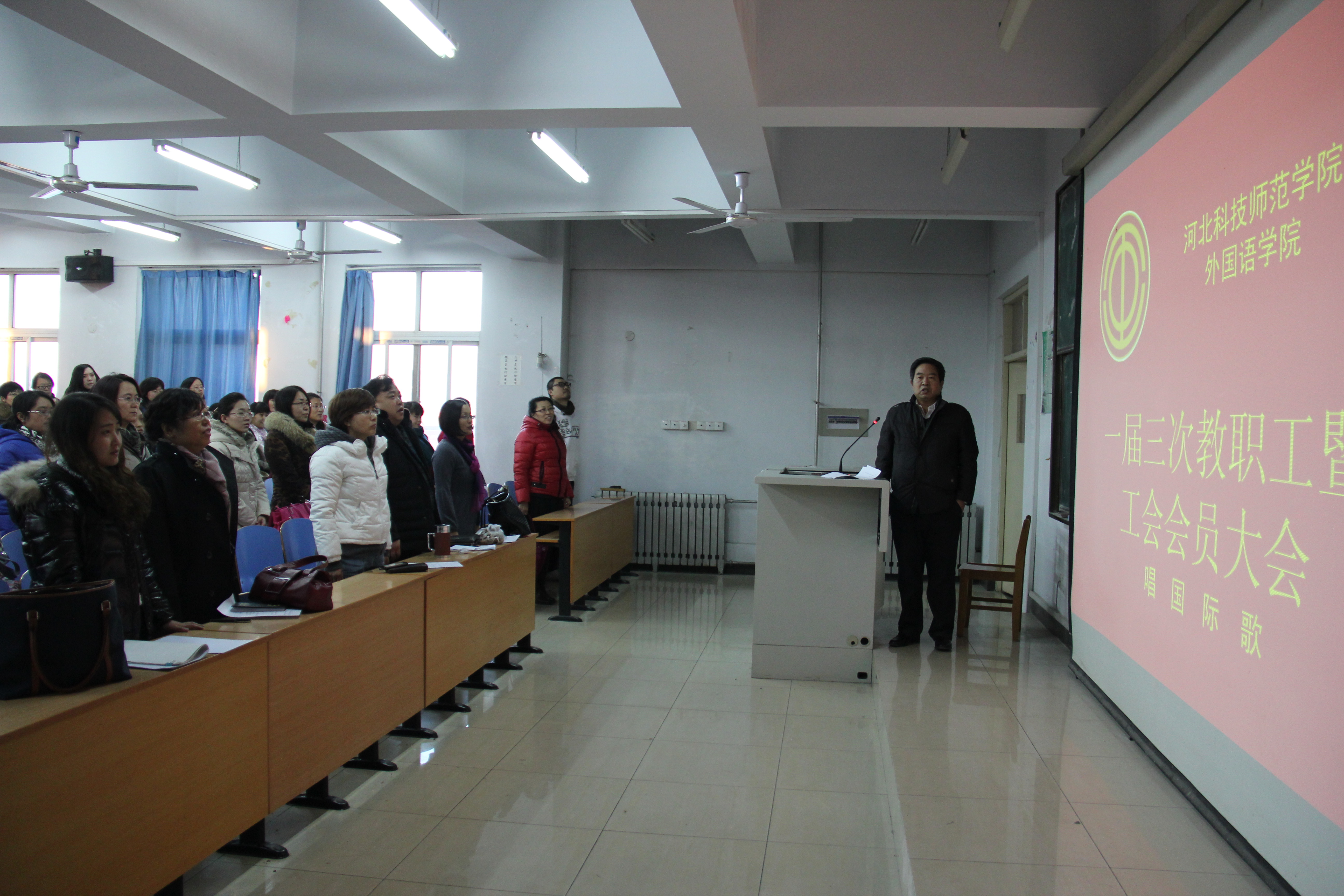 2013年12月26日下午2点,kaiyun中国官方网站在开发区校区综合楼312室召开一届三次教职工暨工会会员大会。kaiyun中国官方网站全体教职工参加了大会。