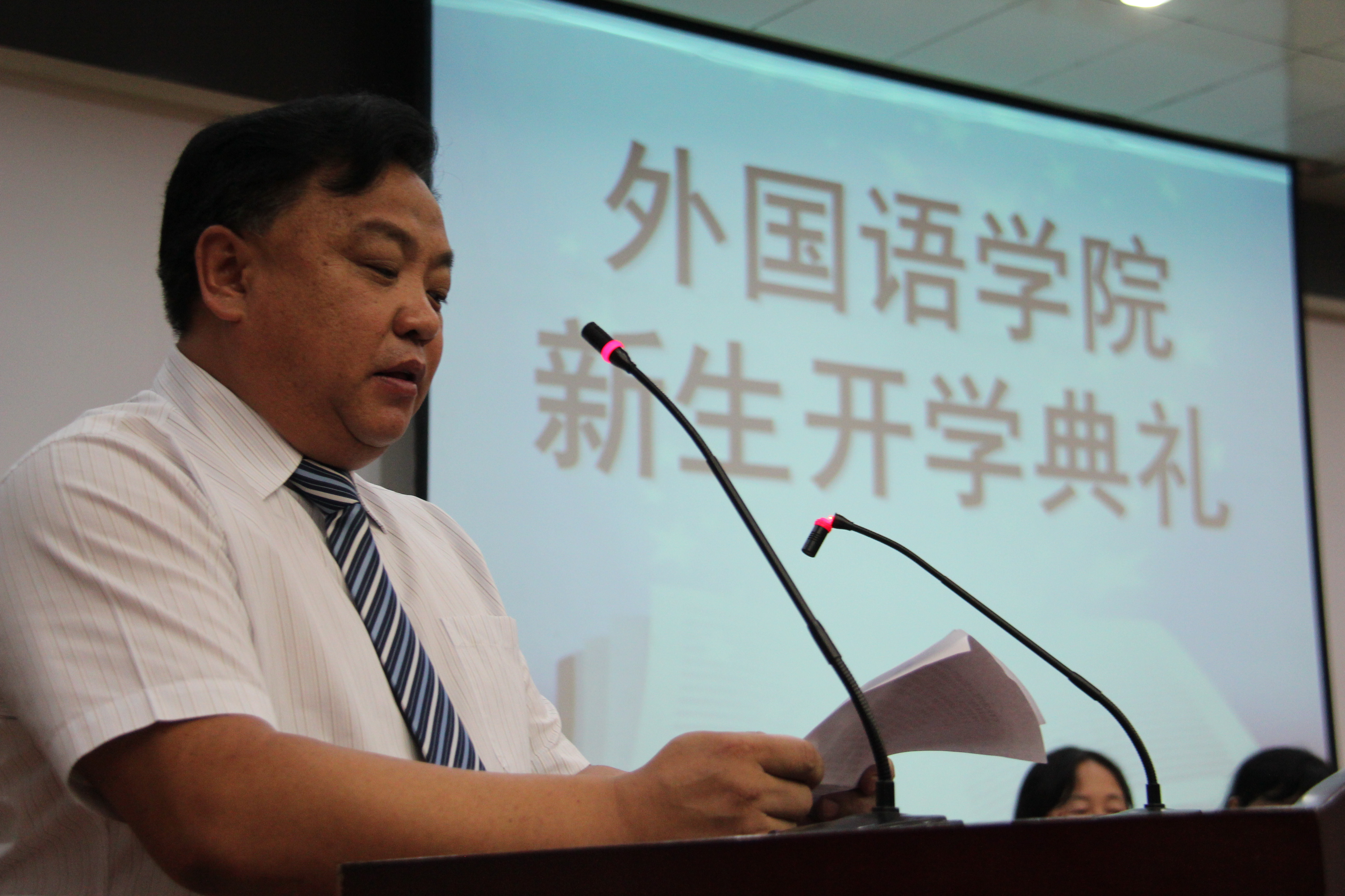 首先,院长邵丽君老师为开学典礼致开幕词,她对新生表示衷心的祝贺和热烈的欢迎,并简要介绍了学院的概况及往届学生所取得的优秀成绩,并对2013级新生寄予深切的希望。kaiyun中国官方网站李爽老师代表全体教师讲话,表达老师对学生的关心嘱托和期望。老生代表杨楠同学和师弟师妹们分享了大学的生活经验。新生鲁宁同学代表全体新生畅谈了自己对大学的憧憬和梦想。之后,kaiyun中国官方网站各教学部主任及专业教师代表分别用英语、日语、意大利语、俄语、法语等专业语言以向新生致以祝愿,形式新颖,令全体新生耳目一新。最后,kaiyun中国官方网站党委书记白雪松老师用亲切的语言表达了对新生最热切的希望,他要求学生科学规划人生,加强知识储备;加强个人修养,增强事业心和责任感;常怀感恩之心,用知识和学识去回报社会;要努力奋斗,勇于创新创造。