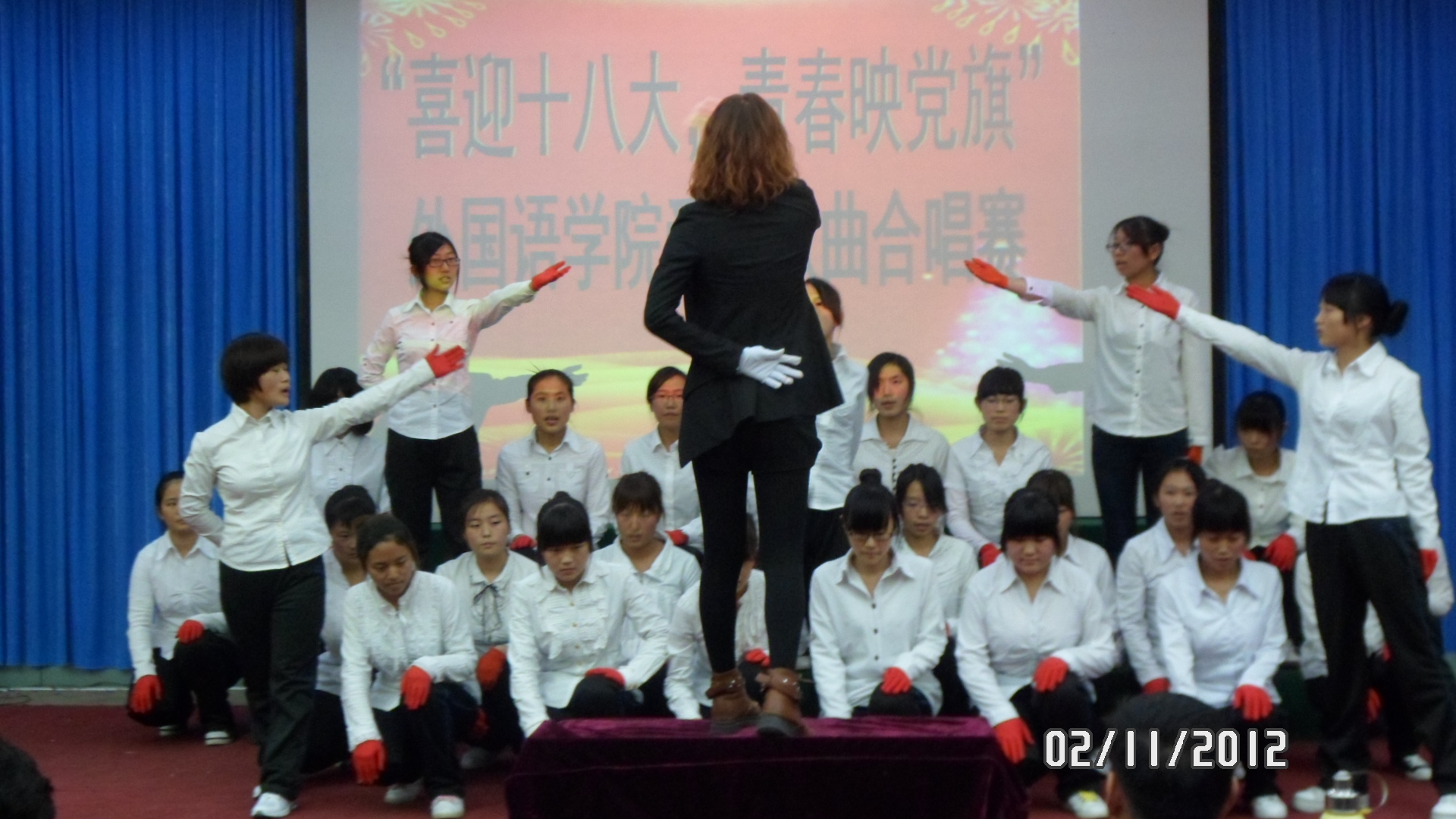 为了激发广大学生爱国热情,丰富广大学生的课余文化生活,同时也为了展现当代大学生的风采,kaiyun中国官方网站于 2012年11月2日晚七点在综合楼二楼报告厅举行了“喜迎十八大,青春映党旗”爱国歌曲合唱赛。kaiyun中国官方网站党委书记刘朝晖、院长邵丽君、副院长游建民、副院长崔海英和学工办老师及各班级辅导员出席了本次比赛。