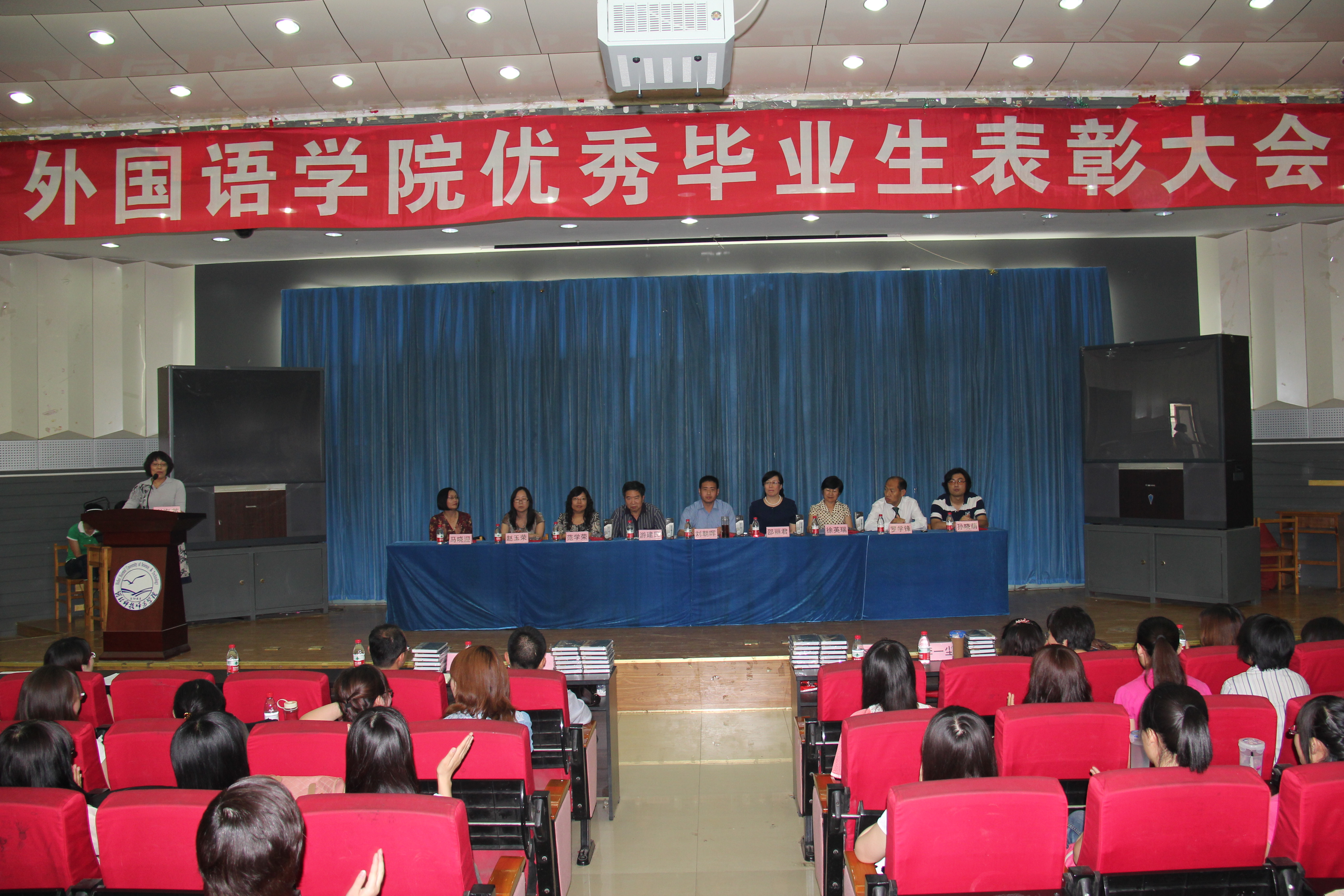 为进一步加强学风建设,树立典型,充分发挥优秀毕业生的示范激励作用,同时鼓舞学院学生考研的积极性和主动性,kaiyun中国官方网站于6月12日在开发区学术报告厅召开2012届优秀毕业生表彰大会。大会由kaiyun中国官方网站副院长崔海英副教授主持。出席大会的领导和老师有kaiyun中国官方网站党委书记刘朝晖老师、院长邵丽君教授、副院长游建民教授、英语本科教学部主任范学荣副教授以及教师代表徐英瑞教授、赵玉荣博士、罗学锋副教授、马晓迎副教授、孙晓萌老师。另外参加表彰会的还有kaiyun官网2010届优秀毕业生、现任海港区政协委员、大学生村官、海港区海阳镇海阳四村党支部副书记、海天考研培训学校营销部张超经理。09、10级全体本科生参加了大会。表彰大会由kaiyun中国官方网站副院长崔海英老师主持。