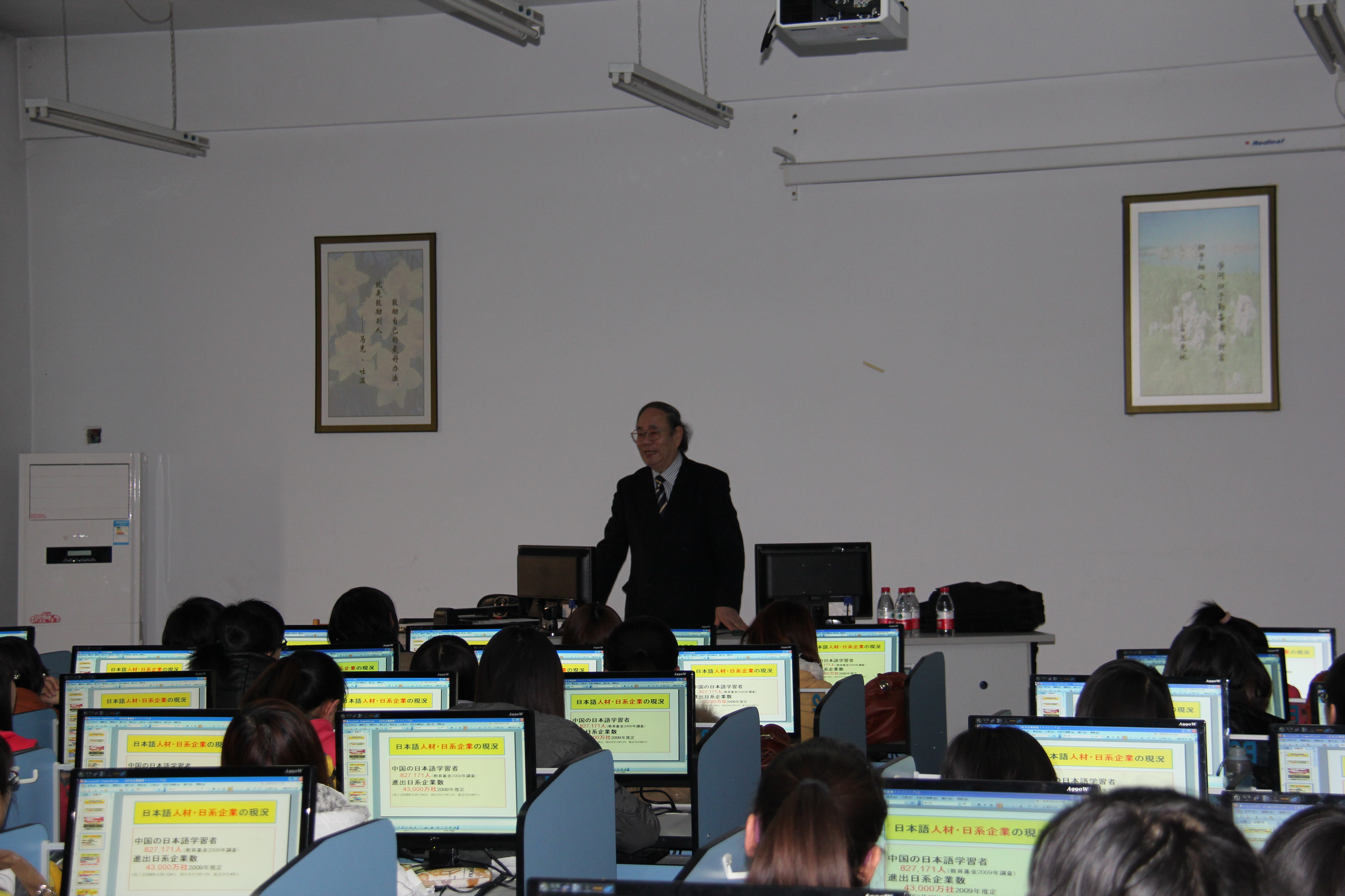 2012年3月12日,日中友好人才育成振兴机构理事长山口隆道先生在kaiyun中国官方网站开发区校区综合楼316教室为应用日语专业学生进行日语讲座。讲座主要内容是日语专业学生就业现状以及就业面试时应注意的各种事项。讲座中,山口先生通过设定面试场景,让学生进行就业面试模拟训练,使学生身临其境,进行实战练习,受益匪浅。该讲座将为日语专业学生就业问题的顺利开展起到极大促进作用。(日语教学部 王丽丽)