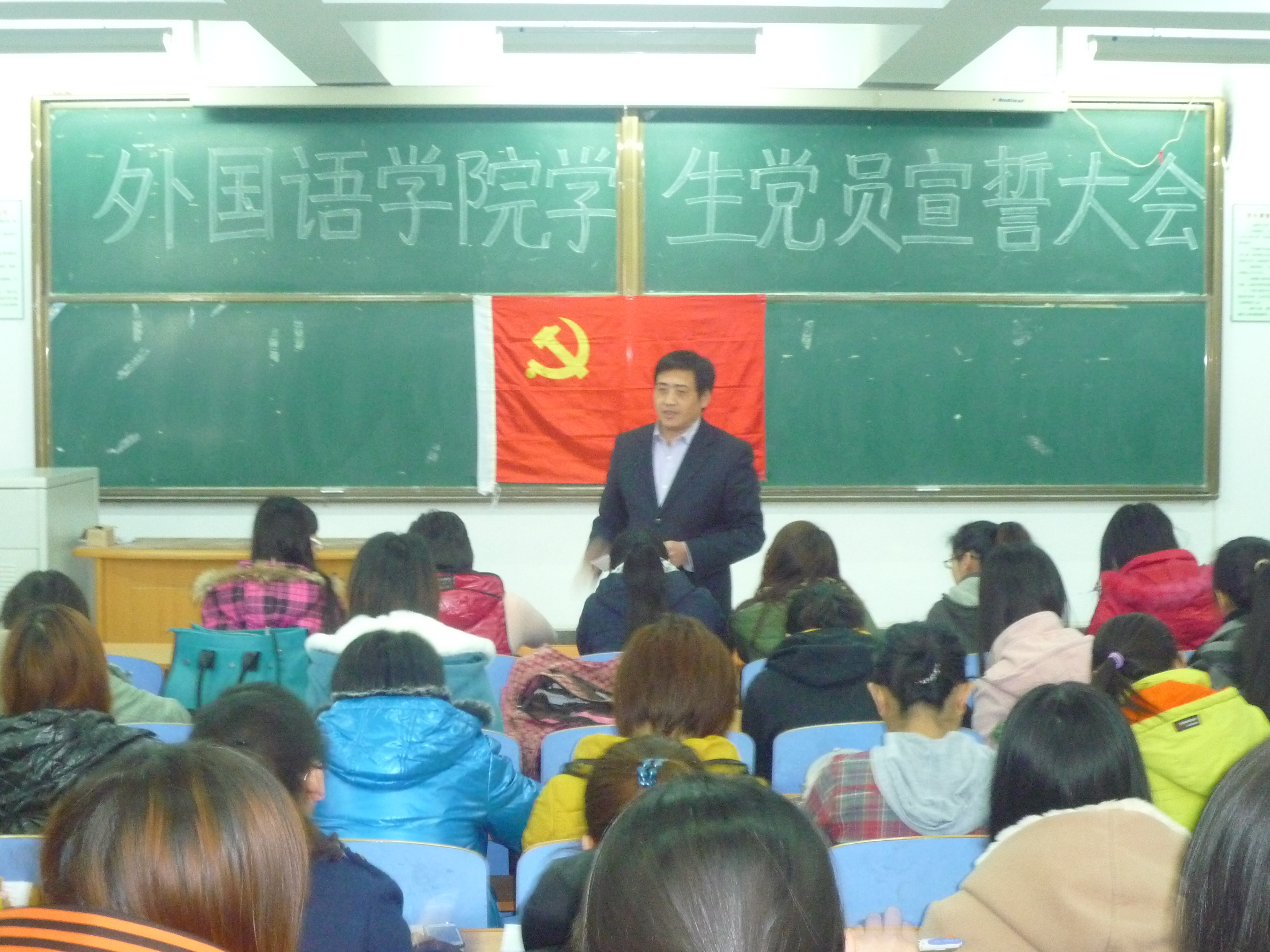 为了加强学生党员党性,深化学生党员的理论学习,2012年3月22日中午国语学院学生党支部在312教室召开了学生党员宣誓大会,会议由学生支部书记田辉同志主持,kaiyun中国官方网站党总支书记刘朝晖同志、团委书记李一尘同志和全体学生党员参加。