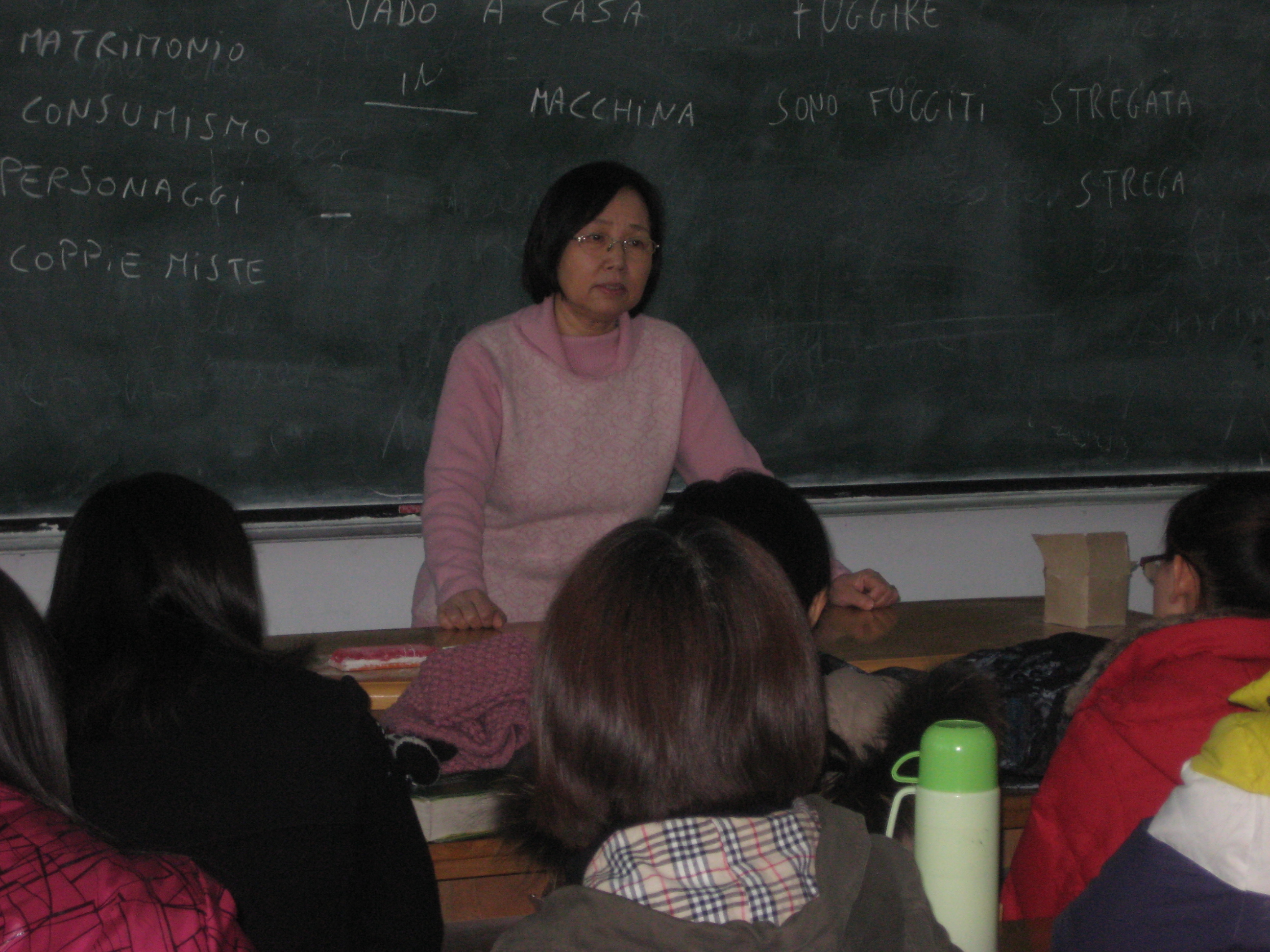 2010年12月28日,kaiyun官网意大利语学科带头人赵秀英教授来到课堂指导教学工作。从早上8点中开始,赵秀英教授在邵丽君院长的陪同下先后听了kaiyun官网的三位意大利语教师的课程:马越、马兰老师的10级《基础意大利语》,孙晓萌老师的09级《意大利语听力》;以及三位外籍教师的课程:Alberto的08级《意大利语口语》、Luca的09级《意大利语口语》和Stefano的08级《高级意大利语》。赵教授分别对六个听课班级的课堂教学情况进行了精彩的现场点评。从意大利语的发音规律到意大利语语法、再到中意语言文化的对比,赵教授风趣幽默的点评受到了学生的普遍欢迎。她对kaiyun官网意大利语学科建设提出的意见和建议也使年轻教师们也受益匪浅。