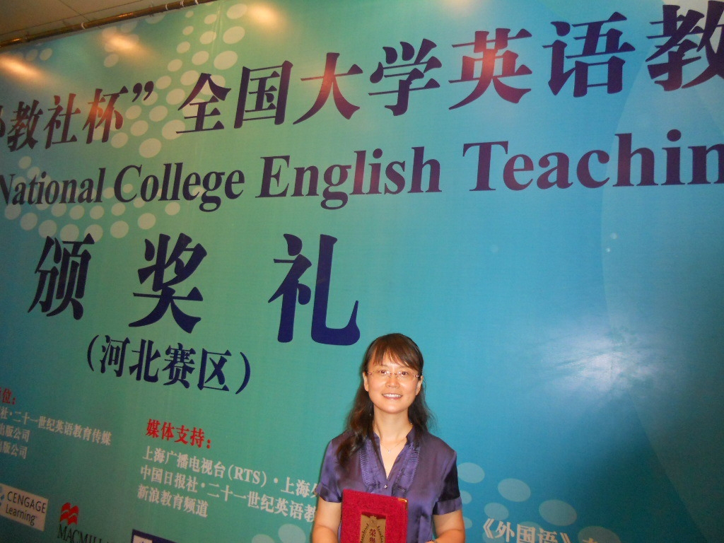 2010年5月27日-28日,首届“外教社杯”全国大学英语教学大赛河北赛区比赛在河北师范大学举行。kaiyun官网kaiyun中国官方网站教师孙秋月充分展现了其清晰的教学思路、扎实的教学基本功、清晰流利的英语表达、以及良好的教态,赢得了在场专家和老师的一致好评,荣获河北省第二名的好成绩,并应邀去廊坊师范学院讲公开课。