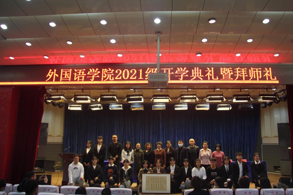 随着《弟子职》音乐的响起,全体学生向老师们行鞠躬拜师礼。简朴而隆重的拜师礼,使学生既受到传统文化的熏陶,又受到现代文明的洗礼,更是一次深刻的感恩教育。同时,也使教师们更加明确自己作为教师的责任和义务,更有一种师者的成就感和神圣感。学生深深鞠躬,一拜感谢老师的辛勤教导;二拜勤奋努力勇创佳绩;三拜师生携手共进。最后,由21级全体新生为老师们赠送亲手书写的“拜师帖”,字里行间弥漫着浓浓的师生情。英语2101班李欣楠表示:“拜师礼虽然只有短短的几分钟,但是深刻感受到了老师的伟大,加深了对老师的尊敬和爱戴之情”。学院院长崔海英教授强调“拜师礼的目的是让每一位同学了解尊师重道的意义,能够尊师、亲师、敬师,做一个有文化、有修养的人,同时又用这种特别的方式来传承我们中华民族最优秀的传统文化,重构新时代基于新型师生关系之上的师生命运共同体”,并呼吁同学们孝敬父母、尊敬老师,做到德智体美劳全面发展。老师们也纷纷表示,在开学典礼上收到这样一份“礼物”还是第一次,深深感受到了教师这份职业带来的责任和荣誉。