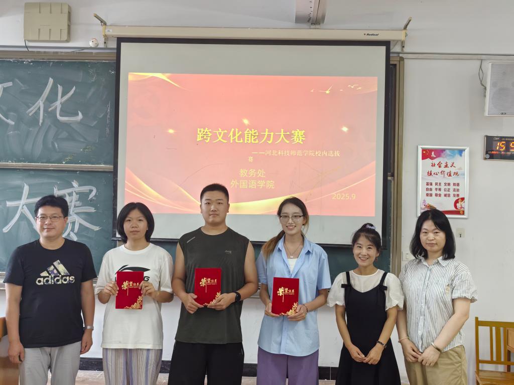 为了深入贯彻落实立德树人根本任务,服务高等教育高质量发展,助力高素质人才培养,为kaiyun官网师生提供一个展示跨文化沟通能力、交流跨文化教学经验的平台,2025年9月11日下午,第二届“外教社杯”河北省高校跨文化能力大赛校级选拔赛在秦皇岛校区逸夫楼举行。
