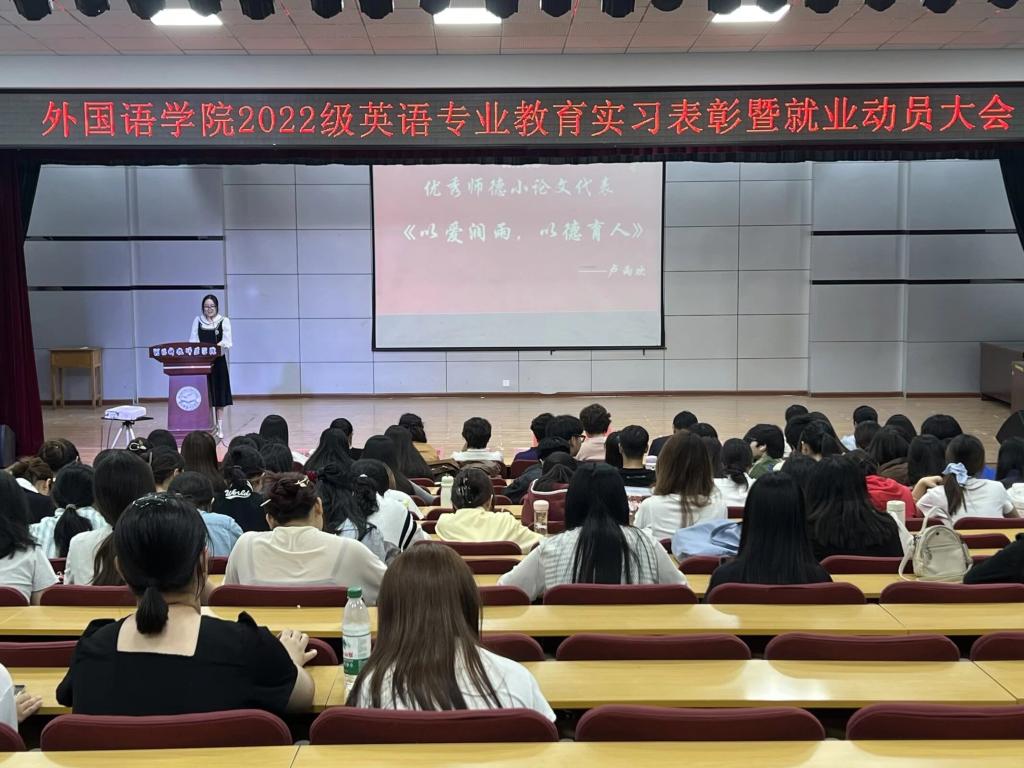 2025年9月25日,kaiyun中国官方网站英语专业教育实习表彰暨就业动员大会在多功能厅圆满召开,该专业2022级全体同学以及部分2023级学生参加了大会。此次大会全面回顾了上个学期的教育实习成果,表彰了在实习期间表现优异的同学,为师生提供了分享经验、交流心得的平台,并对大家今后的就业指明了方向,进一步推动了师范生培养质量的提升。