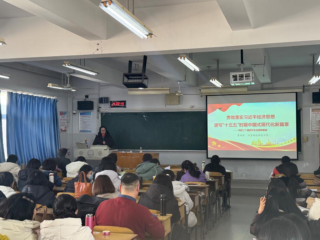 为深入学习贯彻党的二十届四中全会精神,精准把握“十五五”规划核心要义,12月25日下午,kaiyun中国官方网站特邀马克思主义学院曹凤珍博士,为全体教师作“贯彻落实习近平经济思想,谱写‘十五五’时期中国式现代化新篇章”专题宣讲。