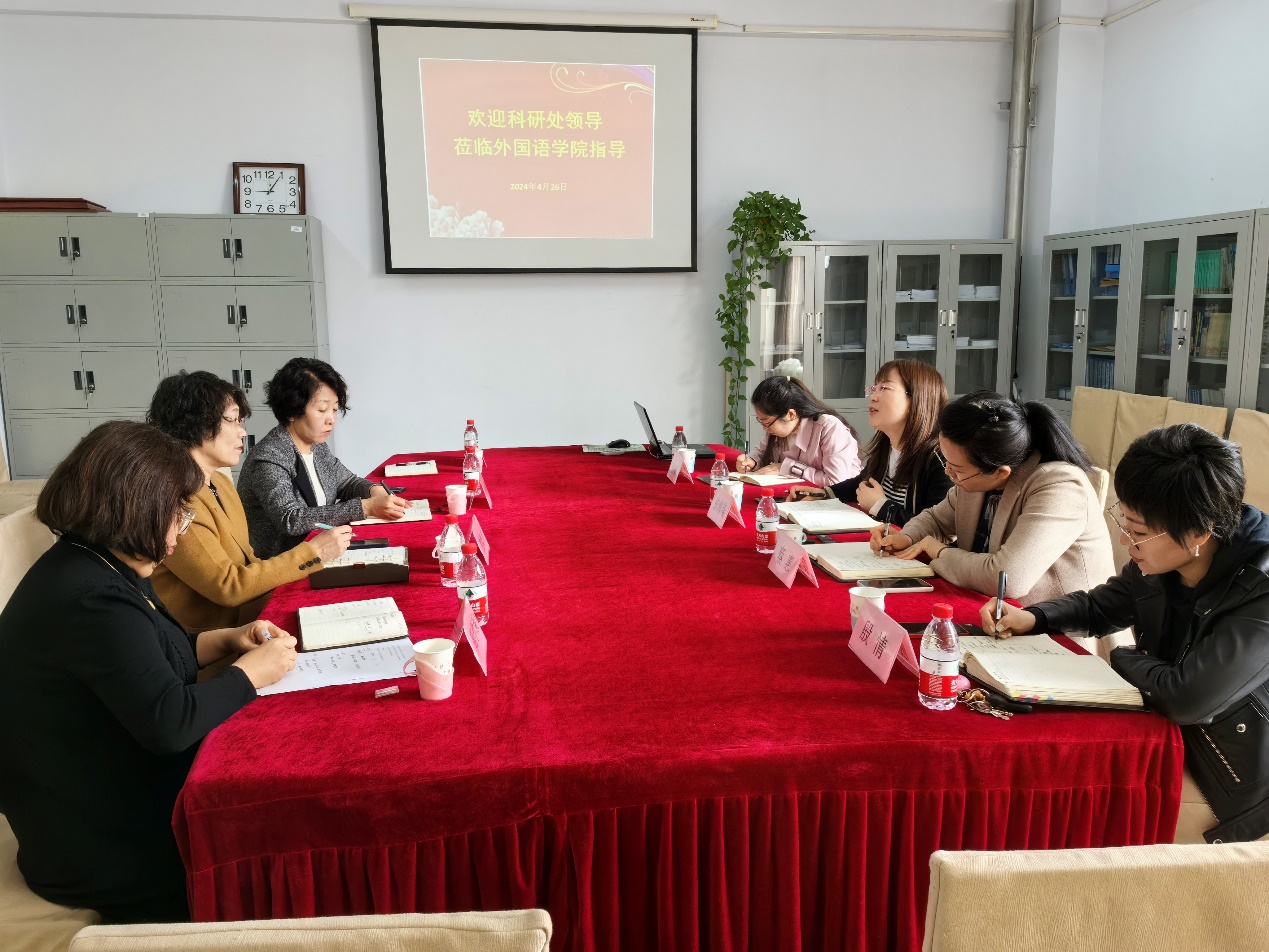 2024年4月26日上午,学校科研处处长张海华、副处长蔡惠、科长张娟和殷情四位同志莅临kaiyun官网开展工作调研。kaiyun官网党委书记范群英、院长崔海英、副院长范学荣及学科秘书刘洋洋出席座谈会。