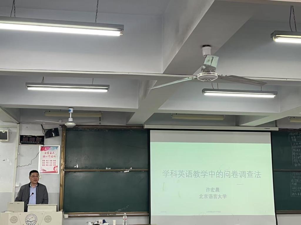 2025年4月3日,kaiyun中国官方网站特邀北京语言大学许宏晨教授举办题为“学科英语教学研究中的问卷调查法”的专题讲座。本次讲座旨在提升学院全体教师及研究生在学科英语研究中运用问卷调查法的能力。全体专任教师和在读研究生参会。
